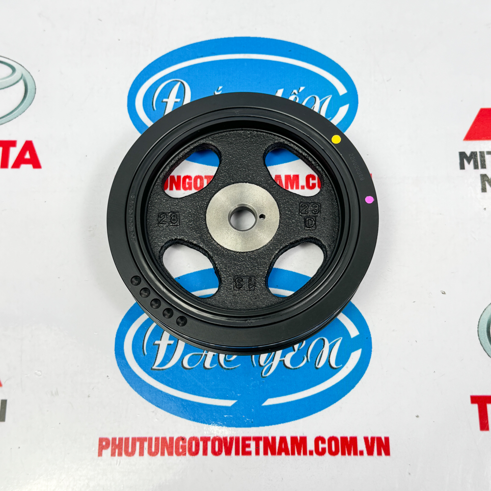 Pully Cốt Máy Mitsu Attrage 2021 được cấu tạo gồm các phần sau: Phần má ngoài là một vòng đệm bằng hợp kim gang với các đường gờ rãnh để bắt và dẫn hướng cho dây curoa tổng. Phần má trong là phần thép được thiết kế với đường kính lỗ bằng đường kính lỗ trục và có 1 rãnh then để ăn khớp với phần then trục giúp truyền chuyển động và ở giữa phần má trong và má ngoài là một vòng đệm cao su giúp giảm chấn khi động vơ làm việc giúp giảm thiểu hư hại cho dây curoa.