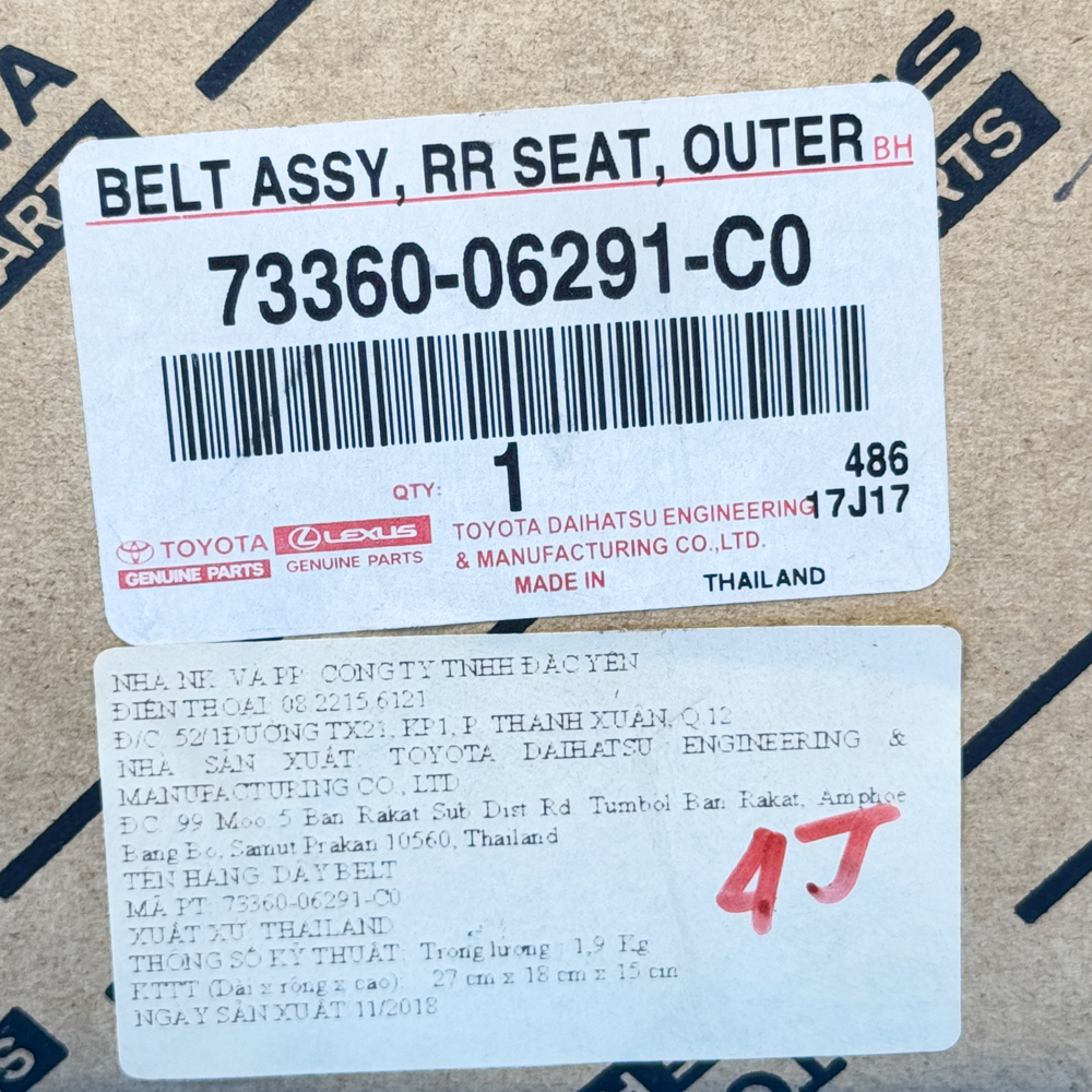 Dây Belt Sau Camry 2015 có 2 phần chính là : dây đai và khóa chốt dây đai