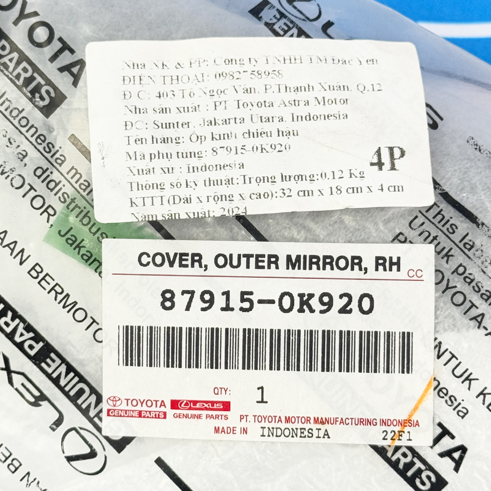 Ốp Gương Toyota Fortuner 2017- 2021 87915-0K920, 87945-0K920