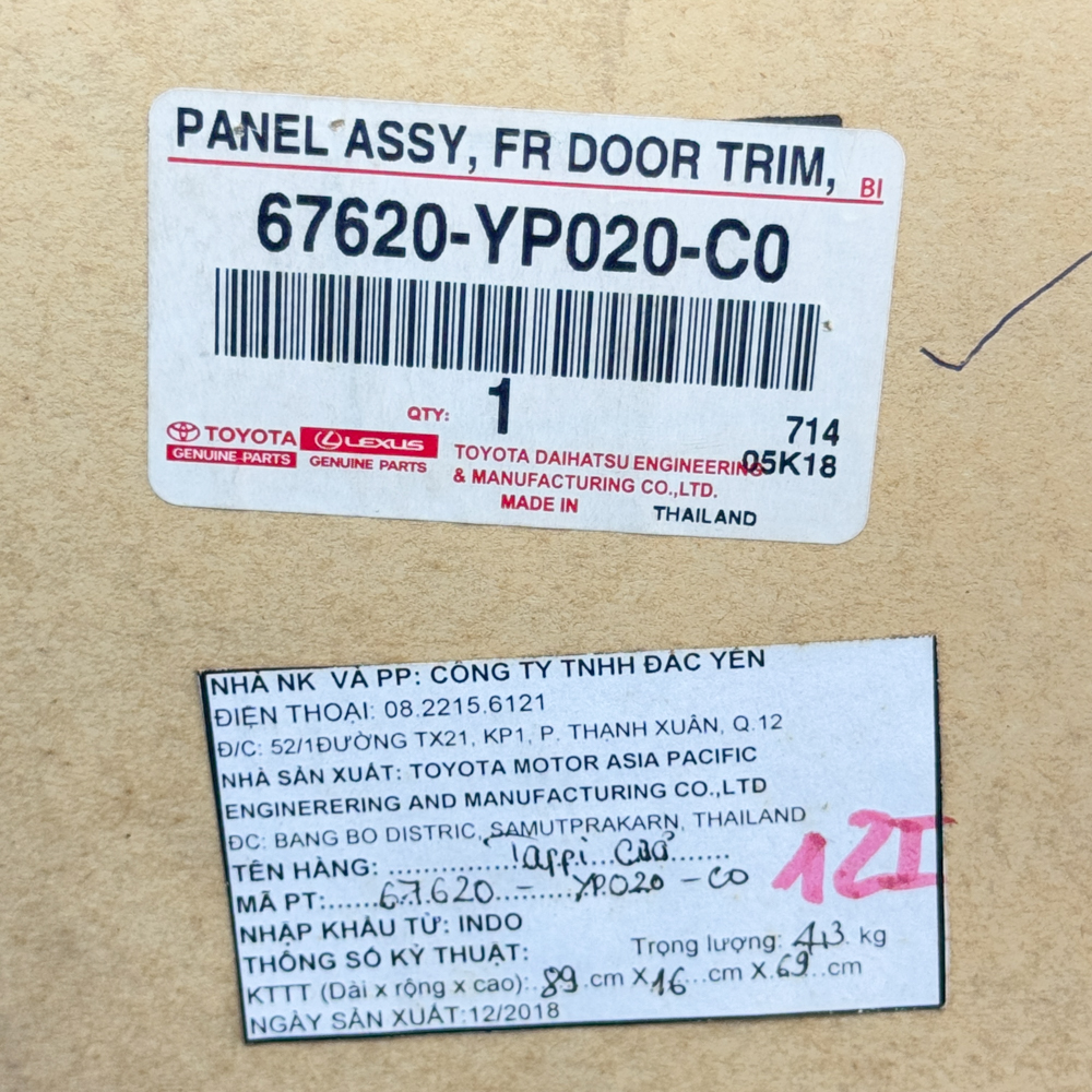 Tappi Cửa Trước Hilux 2019 67620-YP020-C0, 67610-YP021-C0